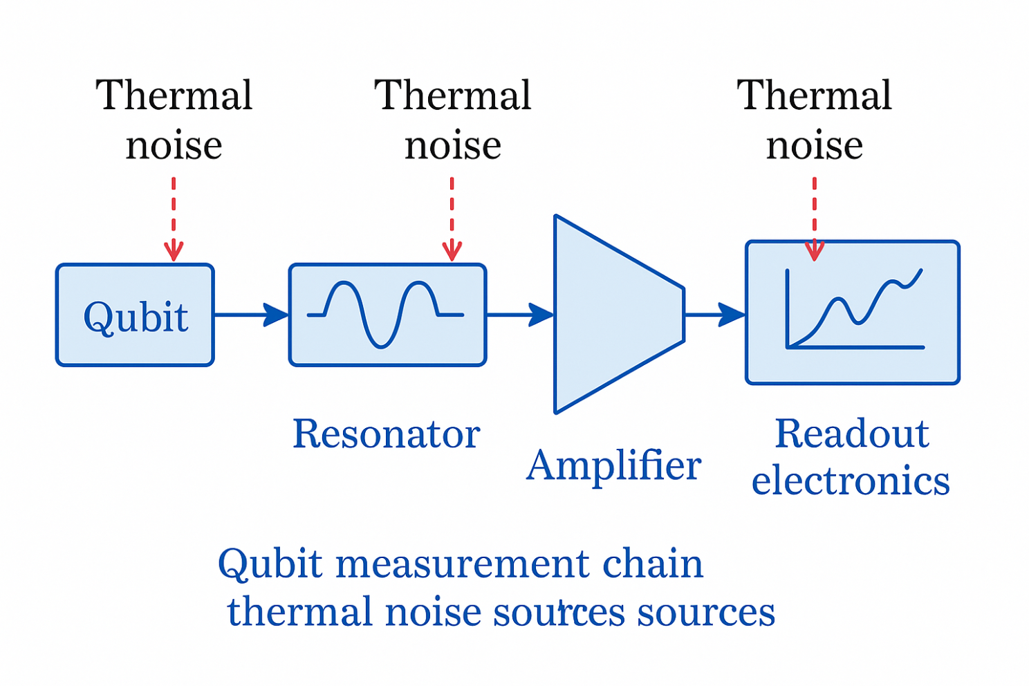 • For superconducting qubits, thermal noise typically contributes 0.1–1% readout error, which is significant for quantum error correction.