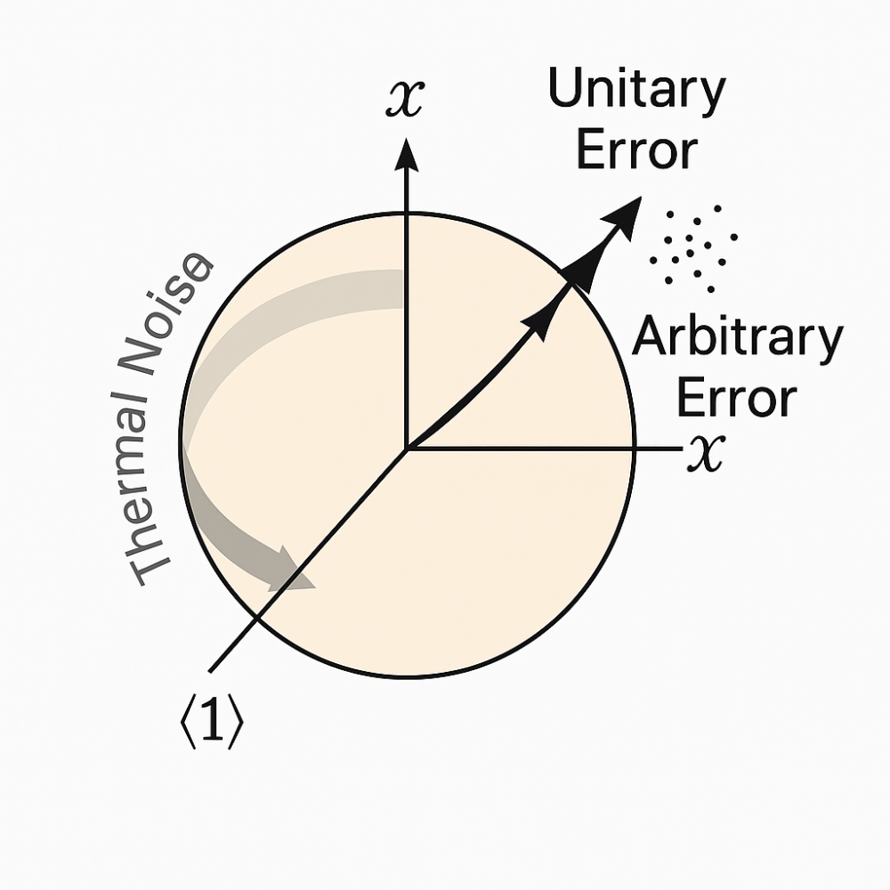 • Mathematical form: If the intended operation is U, but an error happens, the actual operation is U′ = E⋅U, where E is another unitary (like a small over-rotation).