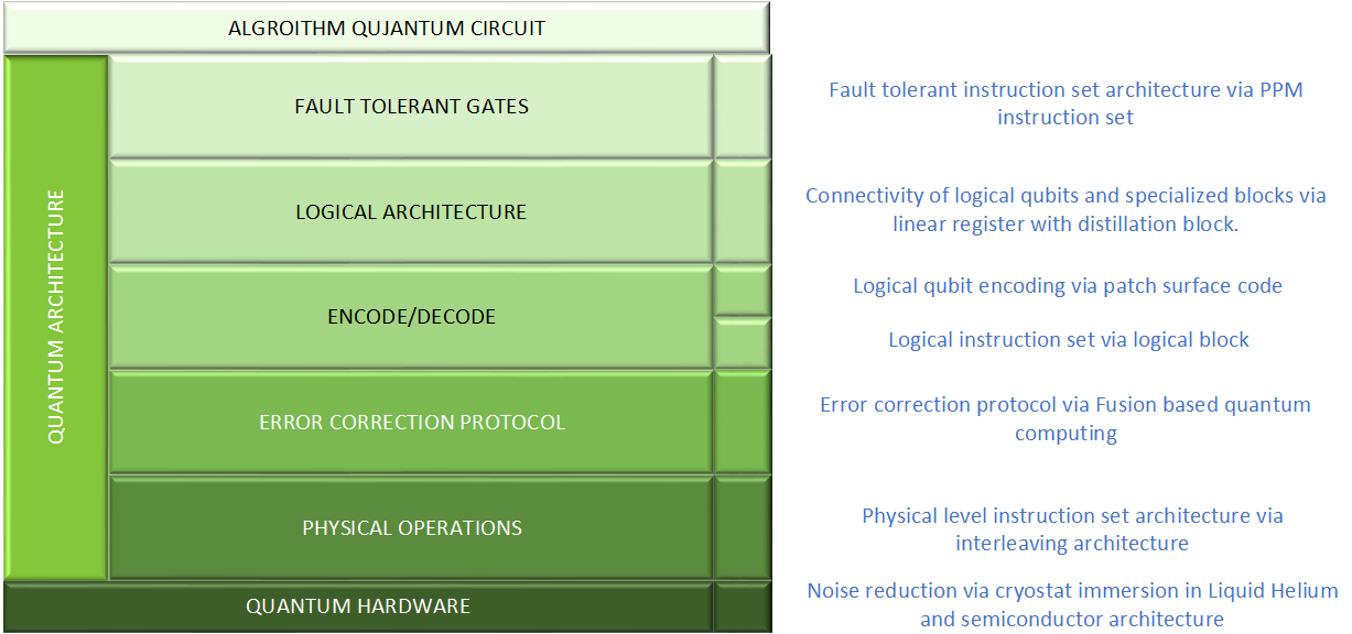 Error correction and fault-tolerance are areas of intensive development for quantum computing right now. These areas are necessary to get a quantum computer into production. Different companies are developing different approaches to this design challenge. Each company is developing their own quantum computer hardware/software protocol stack. I have adopted PsiQuantum, Naomi Nickerson’s Quantum Computer Hardware/Software Protocol stack as a workable architecture to discuss this rapidly developing area. I expect this protocol stack will evolve as the developers begin to bring down their QC error rates.